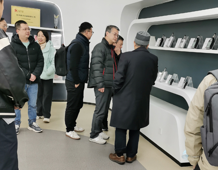 在公司展厅,领导一行参观了jinnianhui今年会仪器的发展史和产品陈列墙,详细了解了公司测量电容传声器的生产情况,以及新款的AWA6292多功能声级计销售状况。